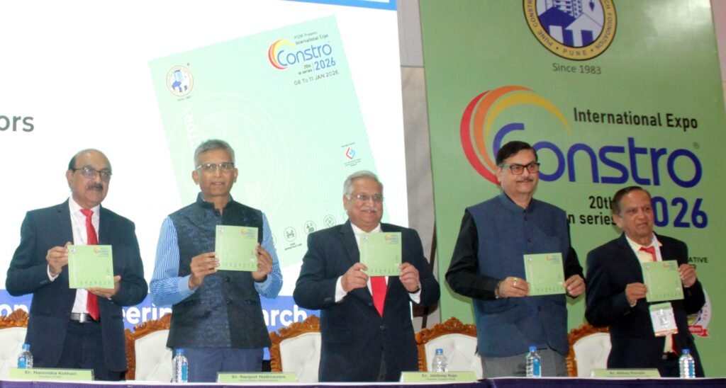 Spread the love Pune: Stressing the urgent need to integrate research and innovation into India’s fast-growing construction sector, CREDAI National vice-president Er. Ranjeet Naiknavare stated on Tuesday that civil engineering graduates must move beyond routine professional practice and actively contribute to the nation’s innovation-driven development. Naiknavare was speaking at the inauguration of CONSTRO 2026, the 20th series of a four-day international construction exhibition jointly organised by the Pune Construction Engineering Research Foundation (PCERF), Pune Metropolitan Region Development Authority (PMRDA), and Pimpri-Chinchwad Municipal Corporation, at the International Exhibition & Convention Centre, Moshi. The exhibition will continue till January 11, 2026. “After entering the profession, many engineers limit themselves to jobs or business and stop pursuing knowledge. While the construction sector is expanding rapidly, innovation remains limited. Students and professionals must focus on research and innovation alongside their careers to give new dimensions to the industry,” Naiknavare said. Highlighting the relevance of industry platforms like CONSTRO, he added that such exhibitions help professionals understand emerging technologies, evolving materials, and global best practices. Over 400 exhibitors are participating, showcasing advanced machinery, construction materials, technologies, and student-led innovations. Addressing the gathering, Ar. Abhay Purohit, President of the Council of Architecture, said that the construction and architecture sectors are central to India’s economic growth, but they must balance sustainability, technology, and professional ethics. He emphasised the use of artificial intelligence, digital design tools, and advanced building materials to improve project efficiency and quality, while calling for continuous learning and social responsibility among professionals. A souvenir and official diary of CONSTRO 2026 were released on the occasion. Union minister for road transport and highways Nitin Gadkari, in a video message, urged the industry to prioritise modern technology, quality materials, and environmentally sustainable construction practices. He stressed that innovation can significantly reduce costs, improve durability, and enhance efficiency in infrastructure projects such as roads, bridges, smart cities, and logistics hubs. CONSTRO chairman Er. Jaideep Raje said the exhibition offers a comprehensive view of the construction ecosystem, bringing together machinery, materials, methods, advanced technologies, and innovation under one platform. Thousands of professionals, students, and stakeholders are expected to visit the expo over four days. Post Views: 14 Post navigation “Dada… you have done an excellent job by waiving the fees of poor girls”Citizens of Mhalunge express gratitude to Chandrakantdada Aishwarya Surendra Pathare Unveils Independent Women’s Manifesto; Women-Centric Agenda Takes Center Stage in Ward No. 3