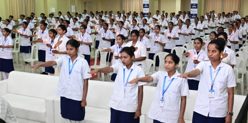 Spread the love Students of the College of Nursing at Nare Take the Pledge Pune: During the lamp lighting ceremony, nursing students took an oath to serve patients selflessly and to remove the darkness from their lives by guiding them towards light. Inspired by the world’s first nurse, Florence Nightingale, who served patients while carrying a lamp, the students pledged to continuously serve patients and bring hope and light into their lives. Through this lamp lighting ritual, the nursing students resolved to carry out their duties with honesty and dedication while serving patients. The lamp lighting and oath-taking ceremony of nursing students from the Late Uddhavrao Tulshiram Jadhav Foundation’s College of Nursing, Nare, was held in the institution’s auditorium. The programme was attended by Vaishali Raut, Administrator of the Maharashtra State Board of Nursing and Paramedical Education; Prof. Dr. Sharmila Dhumal from the Nursing Department of B.J. Medical College; Dr. Jyoti Thakur, Principal of Dr. M.M. Gosavi Institute of Nursing Education and Training Research, Gokhale Education Society; the institution’s President and Principal Dr. Sudhakar Jadhav; Vice-President Adv. Shardul Jadhav; Treasurer Surekha Jadhav; Nursing Principal Sheetal Nikam; along with faculty members, office bearers, teachers, and students. Adv. Shardul Jadhav stated that Florence Nightingale, the world’s first nurse, is regarded as the founder of the modern nursing movement. She was born on 12 May 1820 into a wealthy and aristocratic family. Despite being born into an affluent family, Florence chose the path of service. At that time, due to the dreadful conditions in hospitals, her family strongly opposed her decision to pursue nursing. However, despite strong resistance from her family, she devoted her life to serving the underprivileged. During the Crimean War, Florence Nightingale rendered exceptional service to injured patients. She would nurse wounded soldiers at night, caring for them by the light of a lamp. Because of this, after the war, she became famously known as “The Lady with the Lamp.” Her fame spread throughout England after the war. In 1860, she established a nursing school in London. She also carried out significant work on sanitation among Indian soldiers, which led to a reduction in the mortality rate from 69 per thousand to 18 per thousand by 1873. Florence Nightingale passed away on 13 August 1910. Every year in India, nurses who have made outstanding contributions are honoured with the National Florence Nightingale Award, presented by the President of India. Post Views: 14 Post navigation Unveiling of the Amrit Mahotsav Logo and Pune Peoples Award Ceremony of Pune Peoples Bank Drawing Competition Organized by Grahak Peth and Parle Company Concludes Enthusiastically